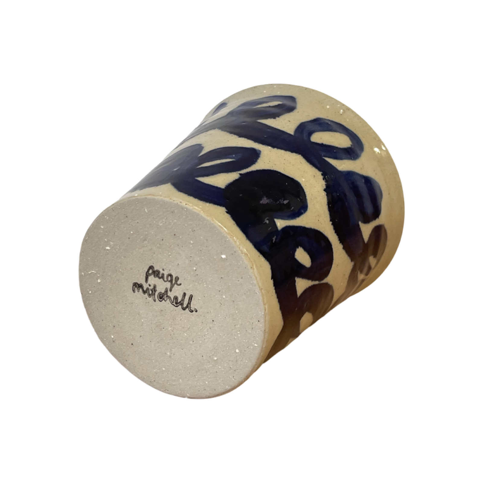 Bisque fired once when dry, stamped, waxed and coated in a glossy transparent glaze. The piece is then decorated using cobalt oxide and placed back in the kiln for its final 1230 degree centigrade glaze firing.