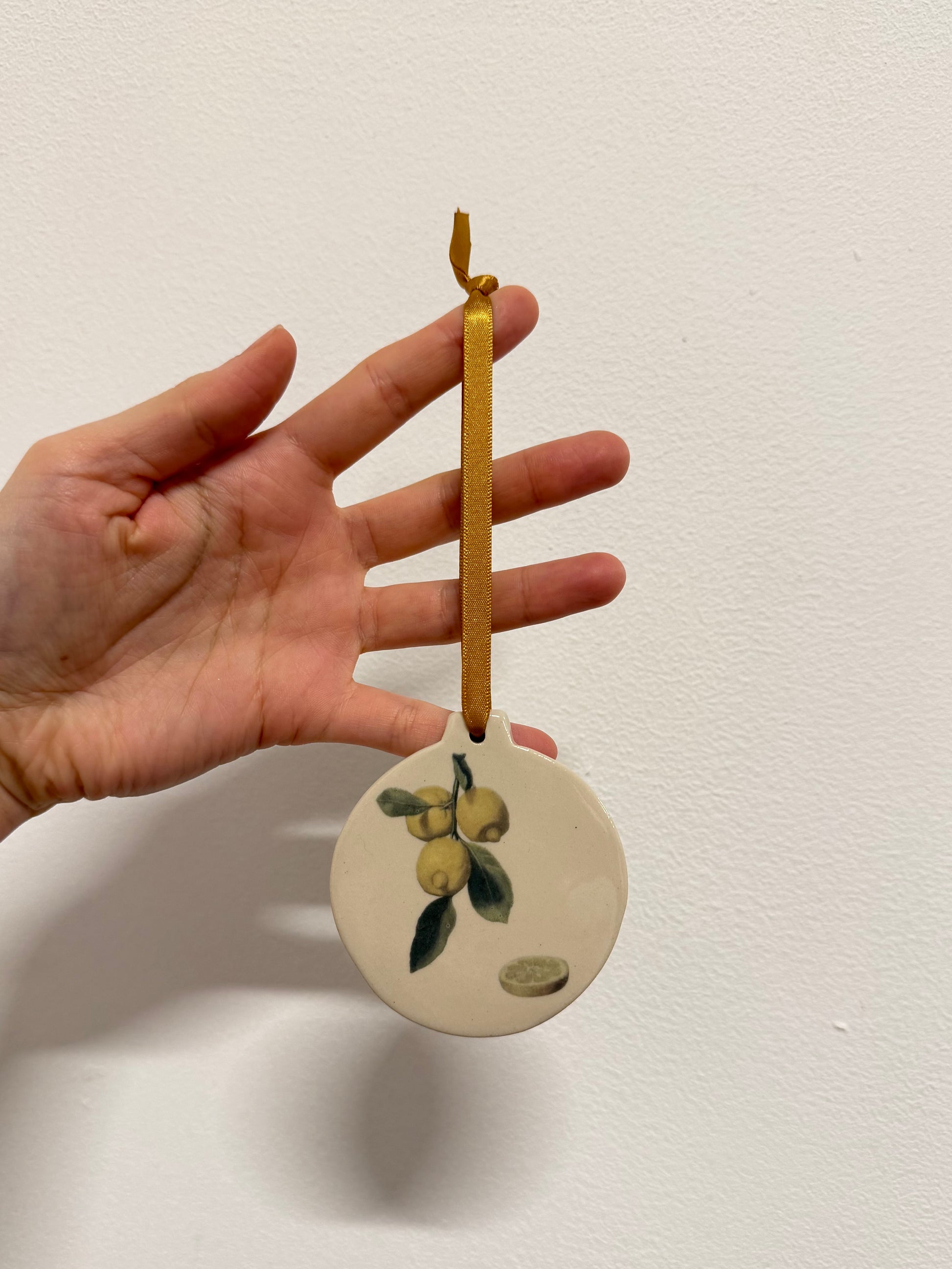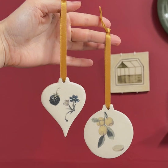 Stoneware decoration made by hand from a slab of white stoneware clay. Cut from a hand rolled slab, smoothed, finished and allowed to dry slowly under wooden boards for a couple of weeks to prevent warping.