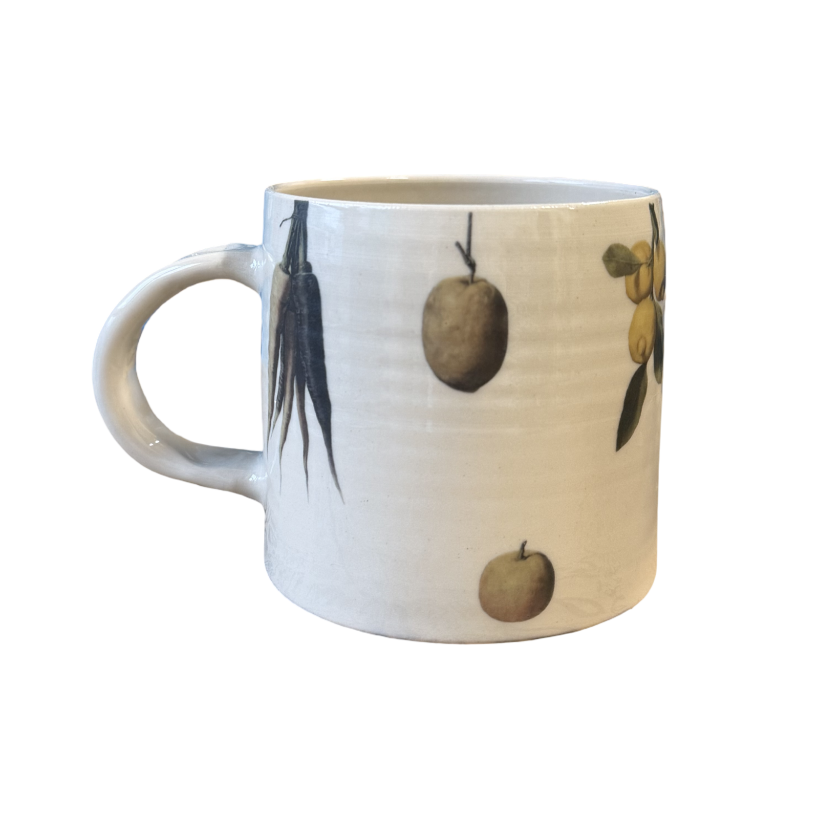 Stoneware mug thrown on the wheel in off white clay with a handle attached by hand.