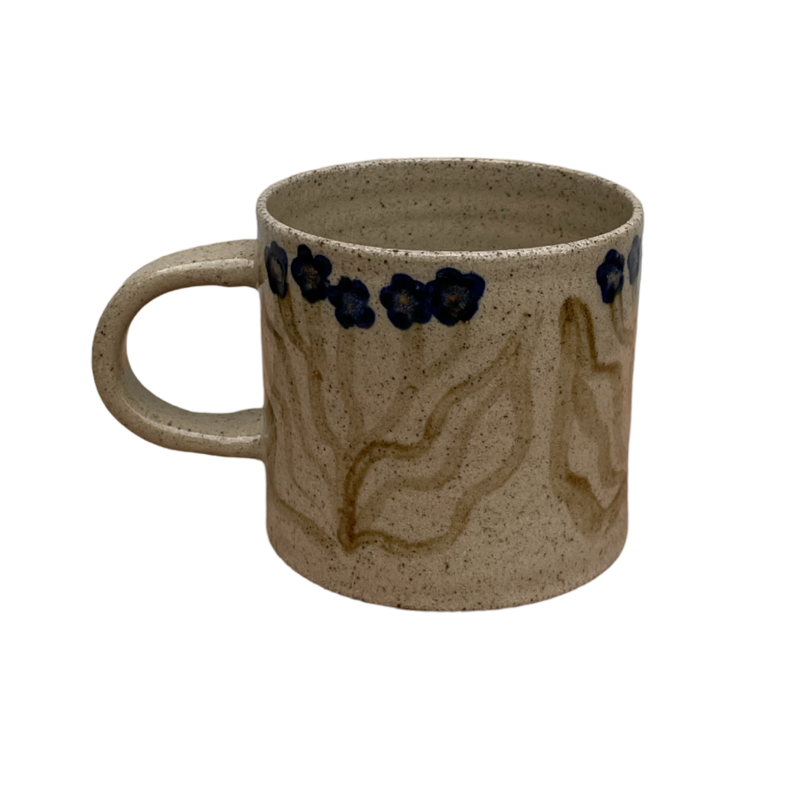 Stoneware mug thrown on the wheel in speckled clay with a handle attached by hand.