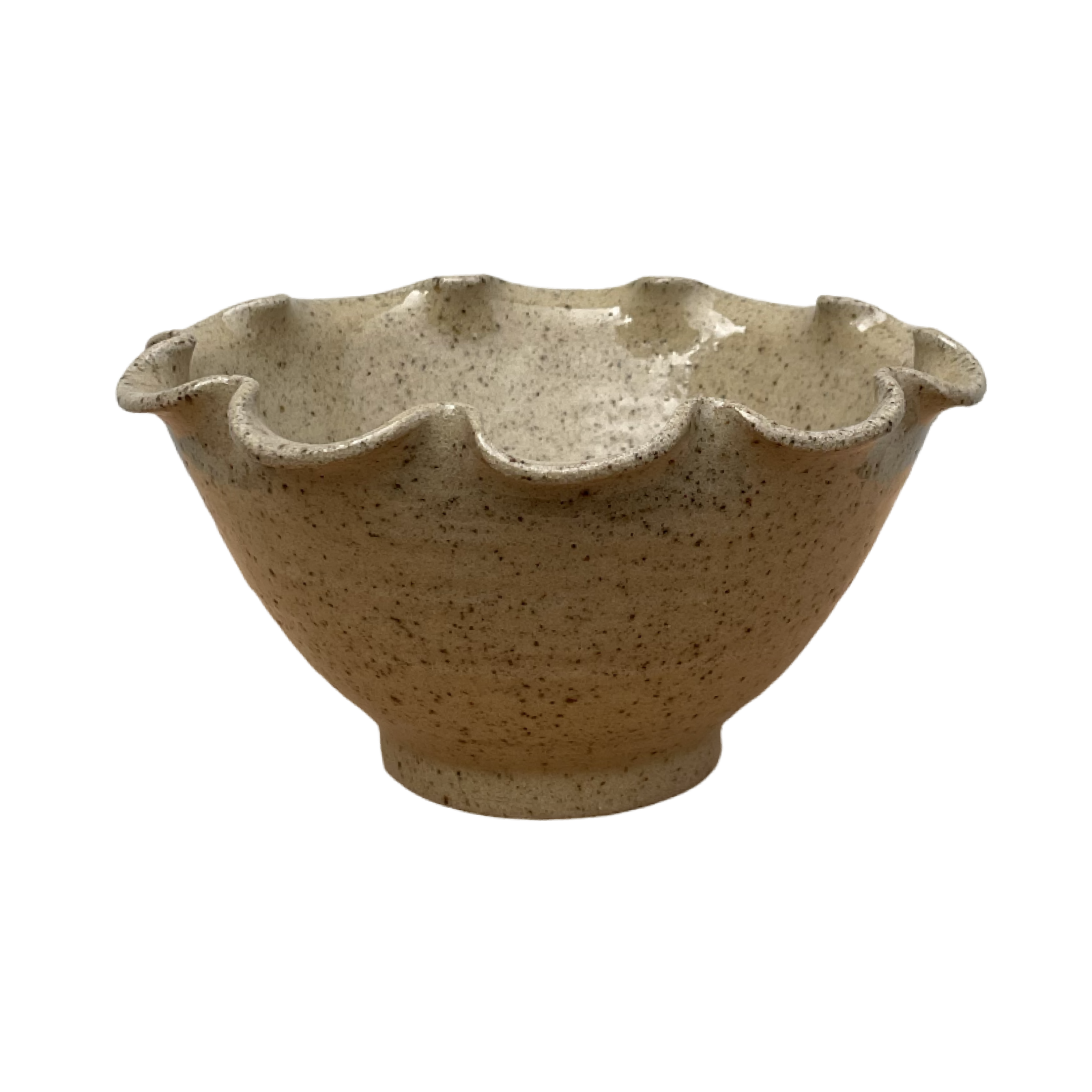 Stoneware footed bowl, hand thrown on the wheel in a buff speckled clay. A foot its turned into the base once the piece is leather hard.