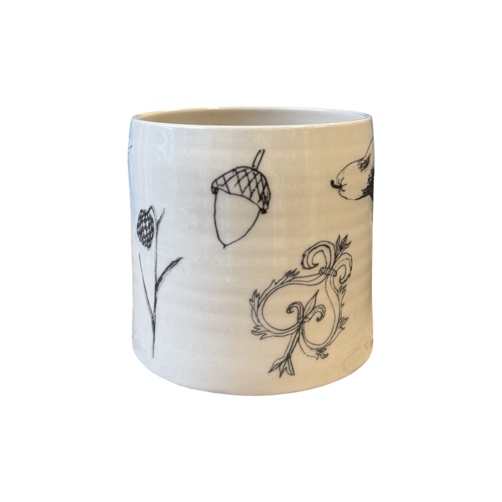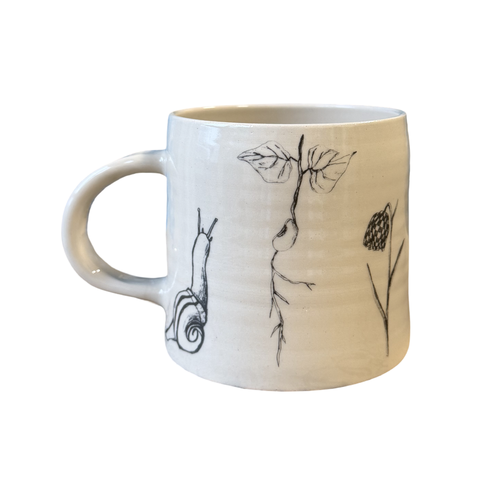 Stoneware mug thrown on the wheel in off white clay with a handle attached by hand.