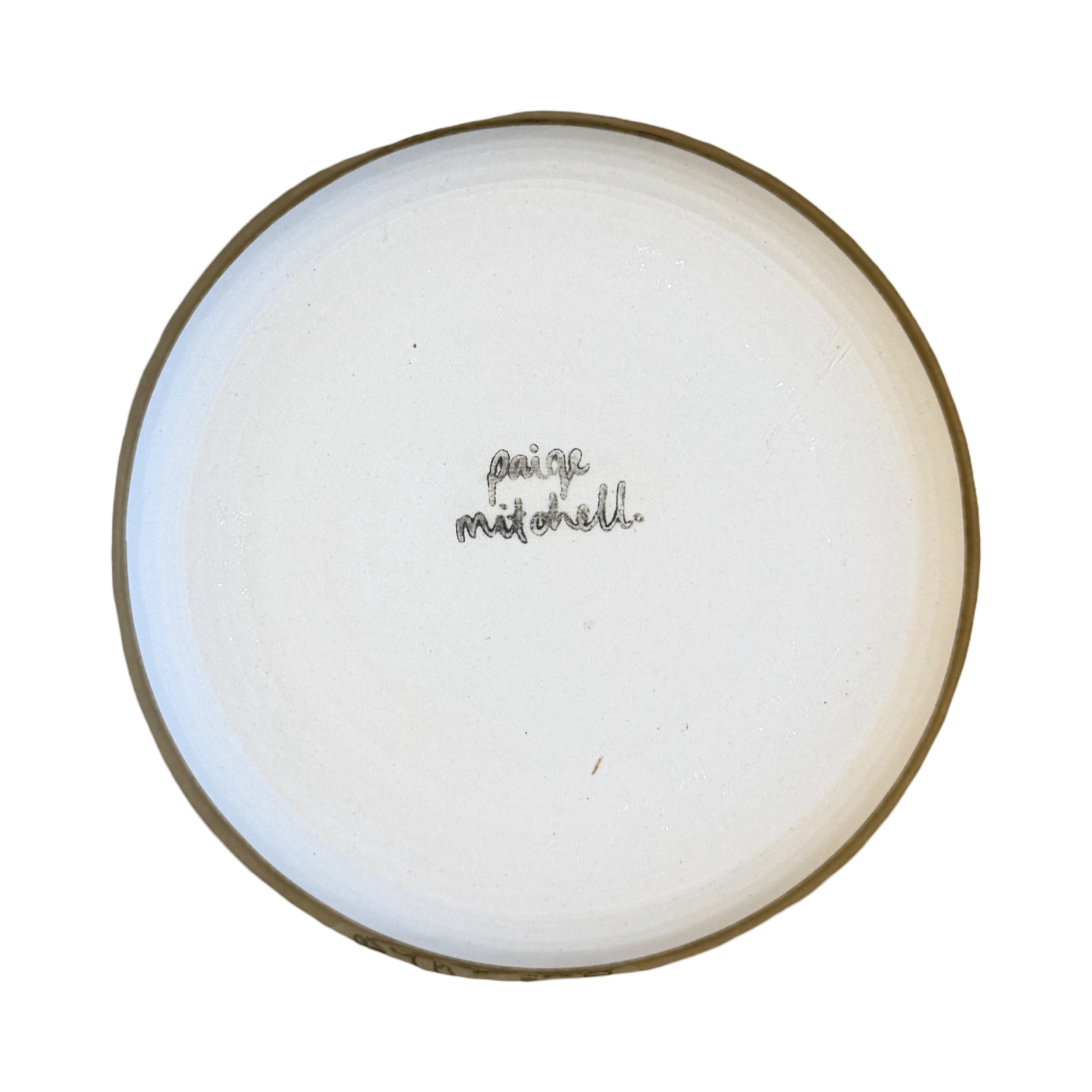 Stoneware plate thrown on the wheel by hand and turned once leather hard.