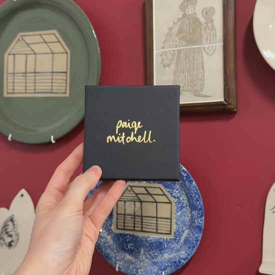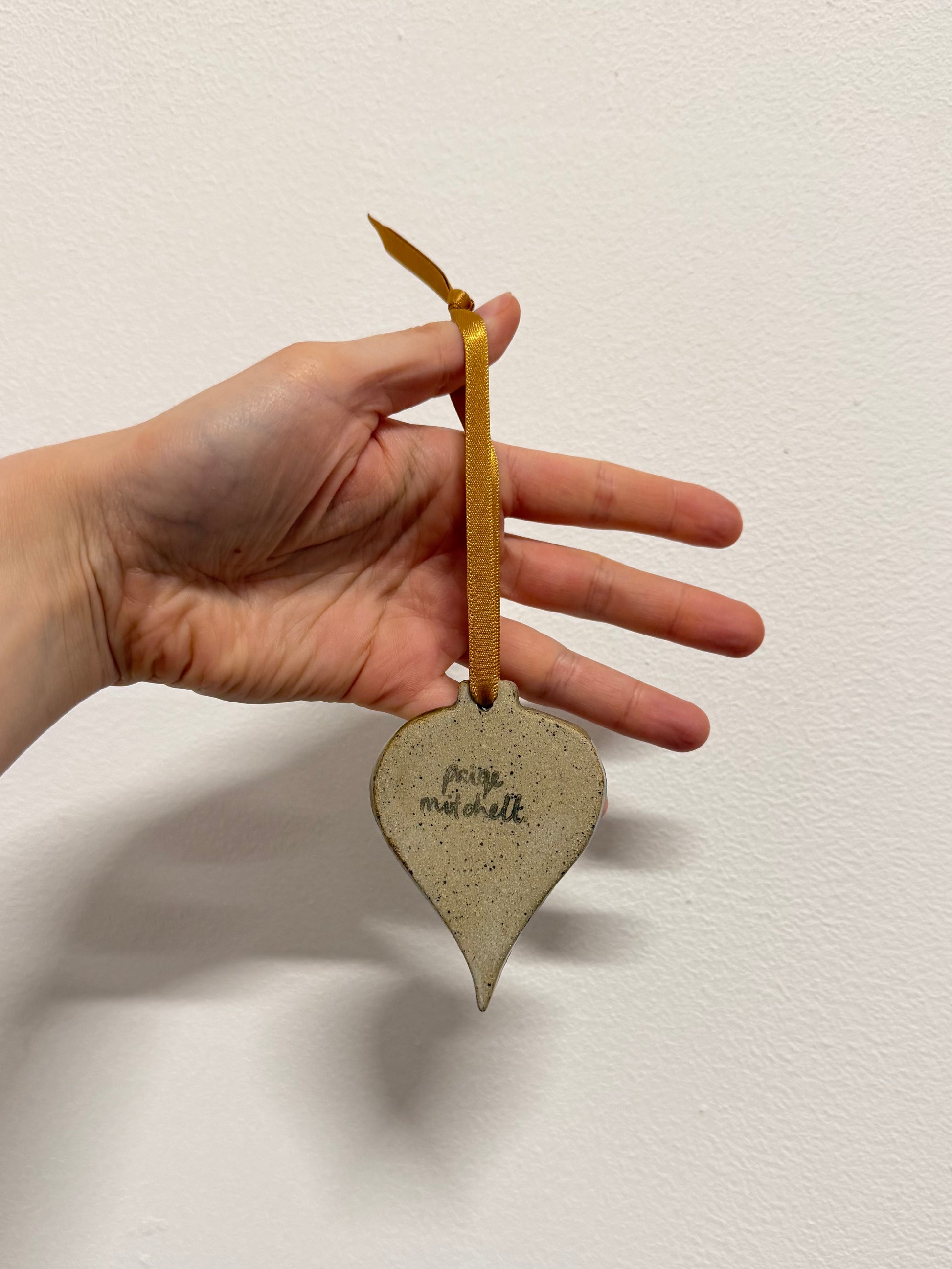 Stoneware decoration made by hand from a slab of speckled stoneware clay. Cut from a hand rolled slab, smoothed, finished and allowed to dry slowly under wooden boards for a couple of weeks to prevent warping.