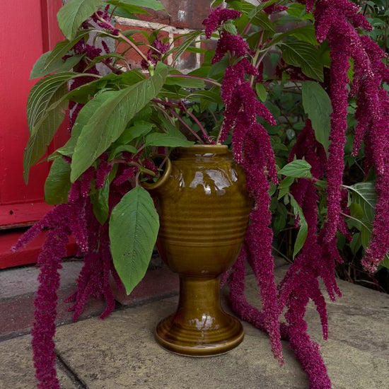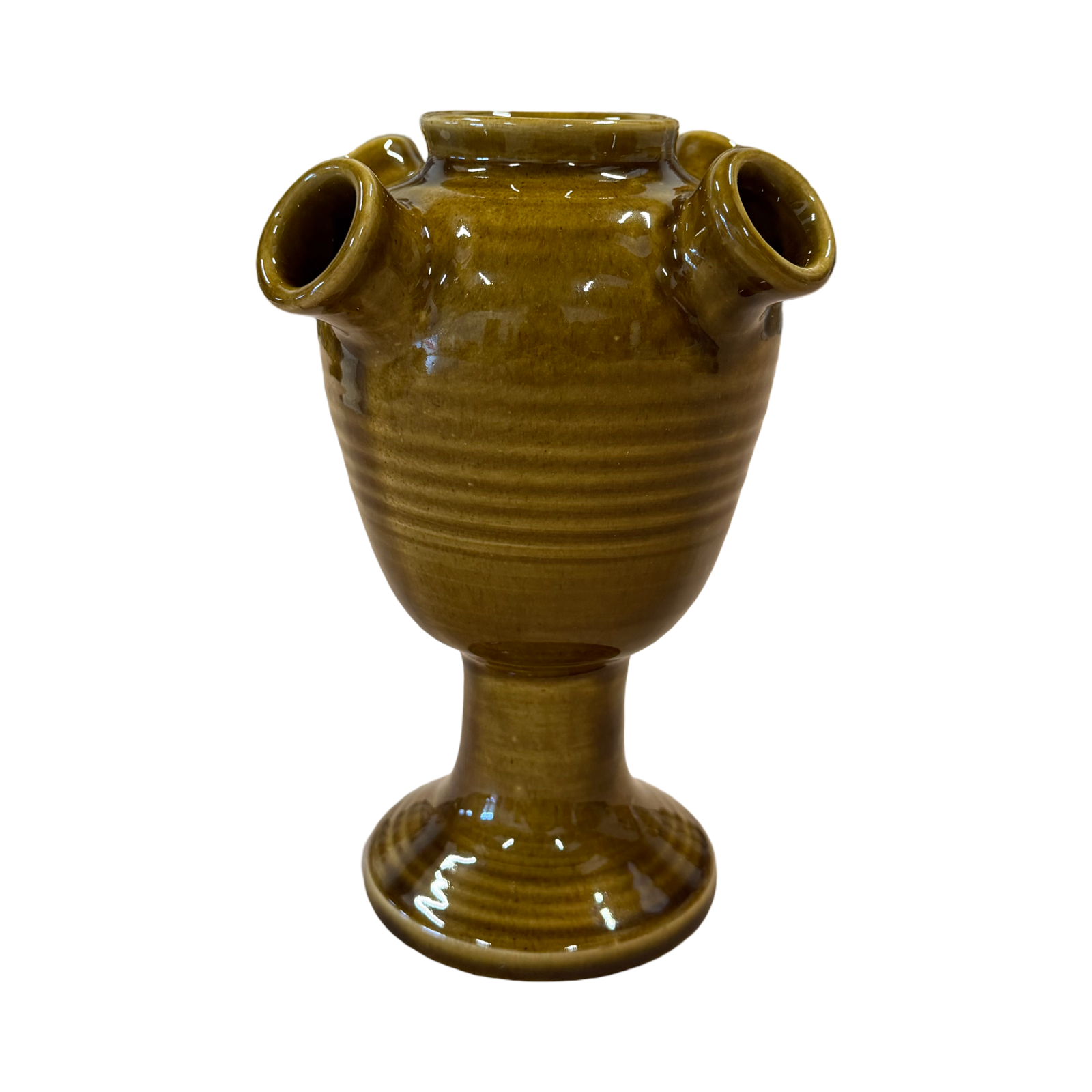 Stoneware footed tulipiere, hand thrown on the wheel in a white stoneware clay in several parts. Pieced together by hand once each piece is leather hard, smoothed, finished and allowed to dry slowly under plastic wrap for several weeks.